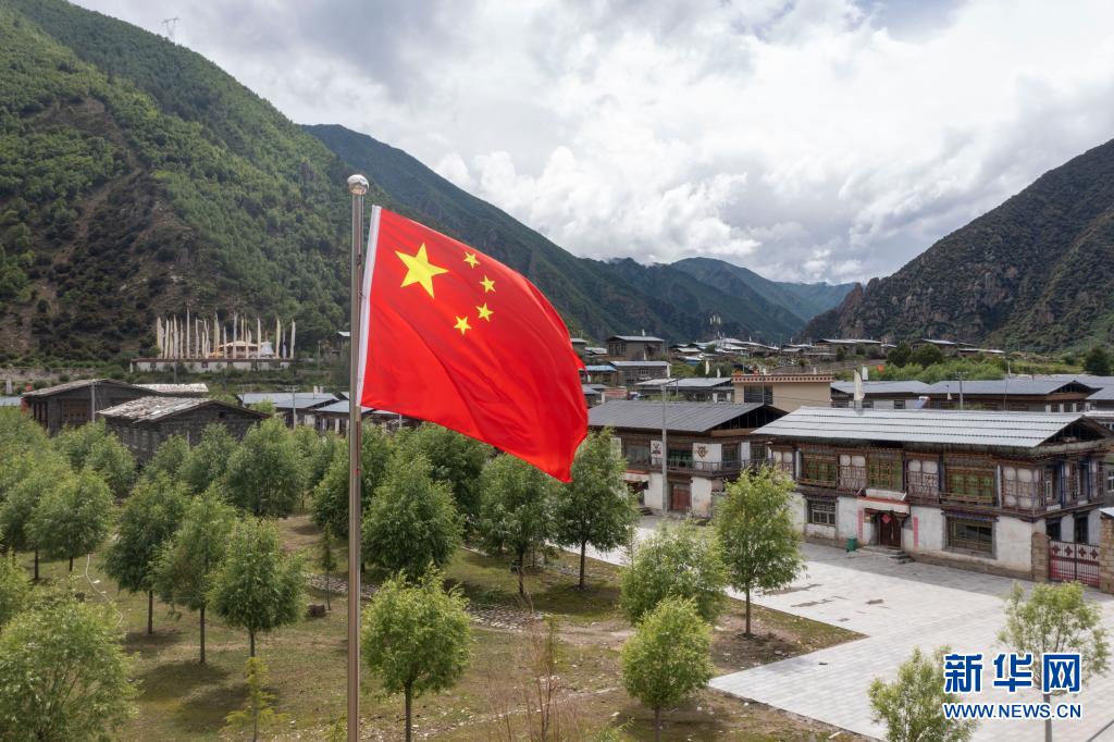 西藏林芝市工布江達(dá)縣太昭村一角(無人機(jī)照片,7月9日攝)。新華社記者 旦增尼瑪曲珠 攝