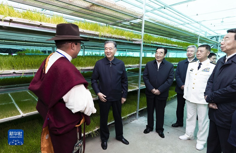 8月20日,帶著以習(xí)近平同志為核心的黨中央的親切關(guān)懷和全國(guó)人民的深情祝福,中共中央政治局常委、全國(guó)政協(xié)主席、中央代表團(tuán)團(tuán)長(zhǎng)汪洋率中央代表團(tuán)部分成員赴那曲市,看望慰問那曲各族各界干部群眾。這是汪洋在那曲市色尼區(qū)嘎爾德生態(tài)畜牧產(chǎn)業(yè)示范基地的大棚里,詳細(xì)了解基地智能牧草種植、牦牛乳制品傳統(tǒng)加工等情況,對(duì)基地帶動(dòng)農(nóng)牧民就業(yè)、促進(jìn)當(dāng)?shù)厝罕娫鍪盏淖龇ū硎究隙?。新華社記者 黃敬文 攝