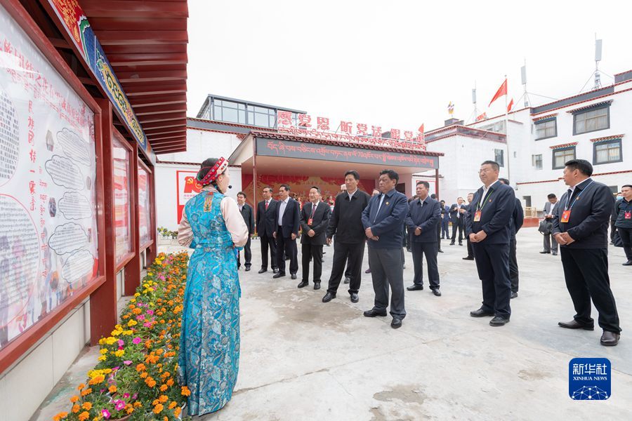 8月20日,中央代表團山南、日喀則分團帶著以習(xí)近平同志為核心的黨中央的深切關(guān)懷和全國人民的深情祝福,分別看望慰問當(dāng)?shù)馗髯甯鹘绺刹咳罕姟_@是全國人大常委會副委員長、中央代表團副團長白瑪赤林率日喀則分團來到日喀則桑珠孜區(qū)城北街道辦事處江洛康薩社區(qū),視察民族團結(jié)創(chuàng)建和新時代文明實踐中心建設(shè)工作情況。新華社記者 翟健嵐 攝