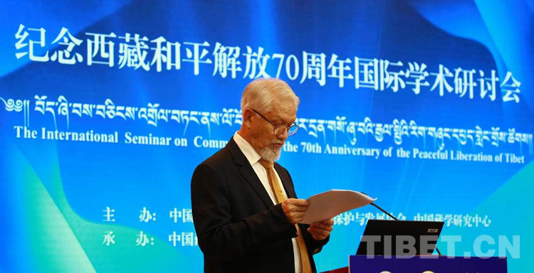 圖為謝文·根多在紀(jì)念西藏和平解放70周年國(guó)際學(xué)術(shù)研討會(huì)上發(fā)言 攝影:楊月云