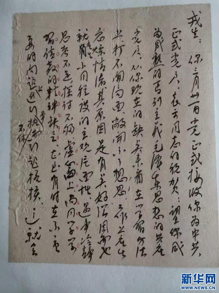 “戎生……我一生,只知為黨為人民,不知為私,你媽媽也是一樣。生出你們兄弟妹以來,均寄托出去了,不能照顧你們周到,現(xiàn)在你們均長成人了,也很努力求進步,這就很好,對我在邊疆工作也是很大的鼓勵之一。”