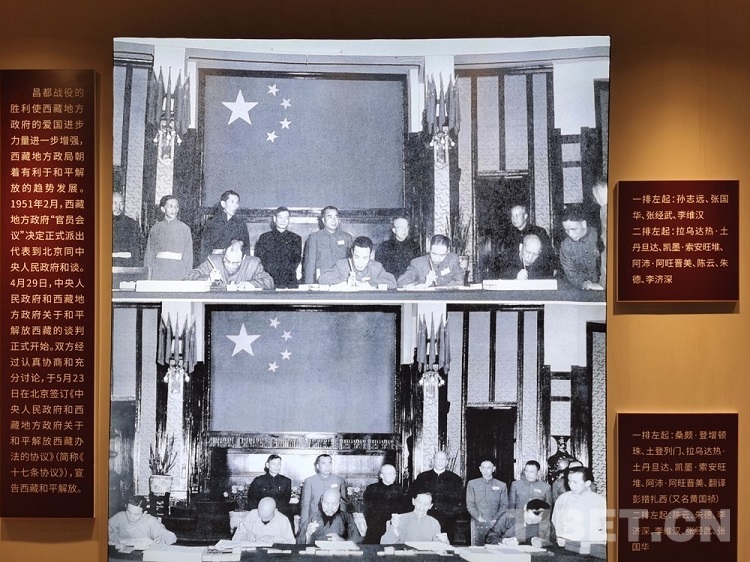 圖為展廳內《十七條協(xié)議》簽訂的歷史圖片 攝影:王淑
