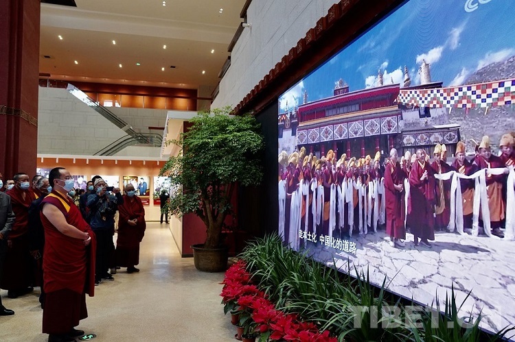 2021年7月21日至23日,習近平總書記親臨西藏考察調研,發(fā)表重要講話,充分肯定西藏經濟社會發(fā)展各項事業(yè)取得的巨大成就,就進一步做好新時代西藏各項工作提出了明確要求。在報道習近平總書記考察西藏新聞的數(shù)字屏前,班禪駐足停留,認真觀看有關報道,不時低頭沉思。