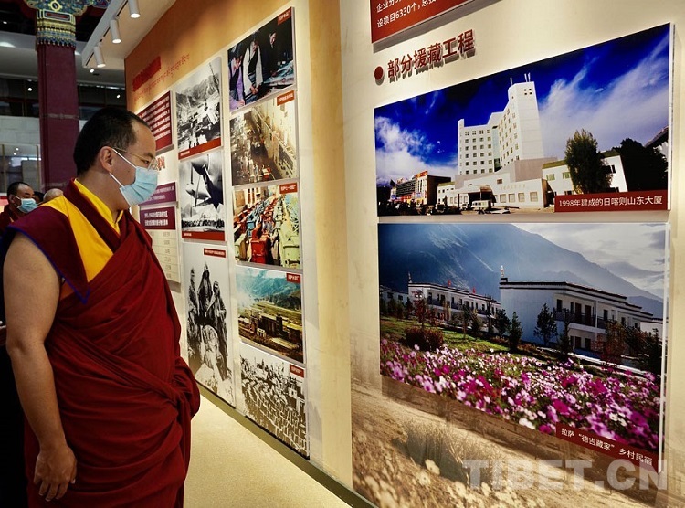 《十七條協(xié)議》簽訂、西藏自治區(qū)第一次人民代表大會召開、習近平總書記來信、對口援藏資金圖表……一幅幅圖片、一份份史料將西藏和平解放70年來,西藏從黑暗走向光明、從落后走向進步、從貧窮走向富裕、從專制走向民主、從封閉走向開放的歷史生動地呈現(xiàn)出來。班禪不時駐足觀看,詳細詢問有關情況,對西藏近年來各項事業(yè)取得的成就予以充分肯定。