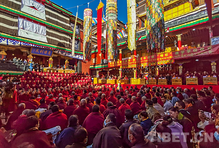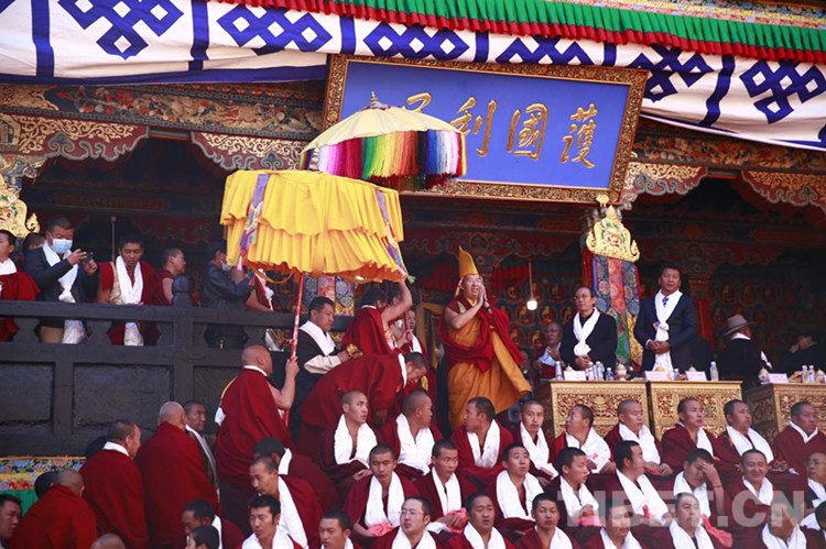 中央統(tǒng)戰(zhàn)部、國(guó)家宗教事務(wù)局賀信表示,十一世班禪自1995年坐床以來(lái),在黨中央的親切關(guān)懷下,勤學(xué)苦修、廣聞深思,解行并進(jìn),宗教學(xué)識(shí)日益精深。特別是近日在扎什倫布寺辯經(jīng)法會(huì)上通過(guò)嚴(yán)格考試和答辯考取最高的“嘎欽”學(xué)位,標(biāo)志著十一世班禪在宗教修為上取得重要成果,也充分說(shuō)明了黨的宗教信仰自由政策在西藏得到全面貫徹落實(shí)。祝愿十一世班禪牢記習(xí)近平總書記的諄諄教導(dǎo),繼承和發(fā)揚(yáng)歷代班禪愛國(guó)愛教、護(hù)國(guó)利民的光榮傳統(tǒng),繼續(xù)刻苦學(xué)習(xí)、潛心修行,輔弼社會(huì)、饒益眾生、莊嚴(yán)國(guó)土、利樂(lè)有情,在維護(hù)祖國(guó)統(tǒng)一和民族團(tuán)結(jié)、堅(jiān)持藏傳佛教中國(guó)化方向、促進(jìn)藏傳佛教與社會(huì)主義社會(huì)相適應(yīng)上做出新的貢獻(xiàn)。
