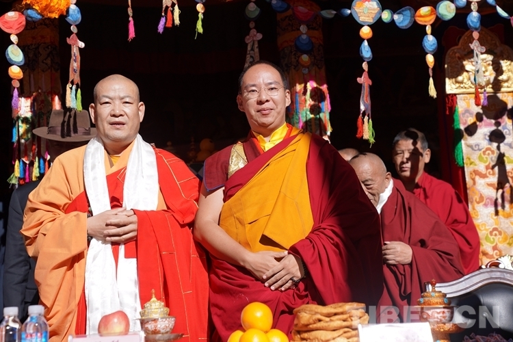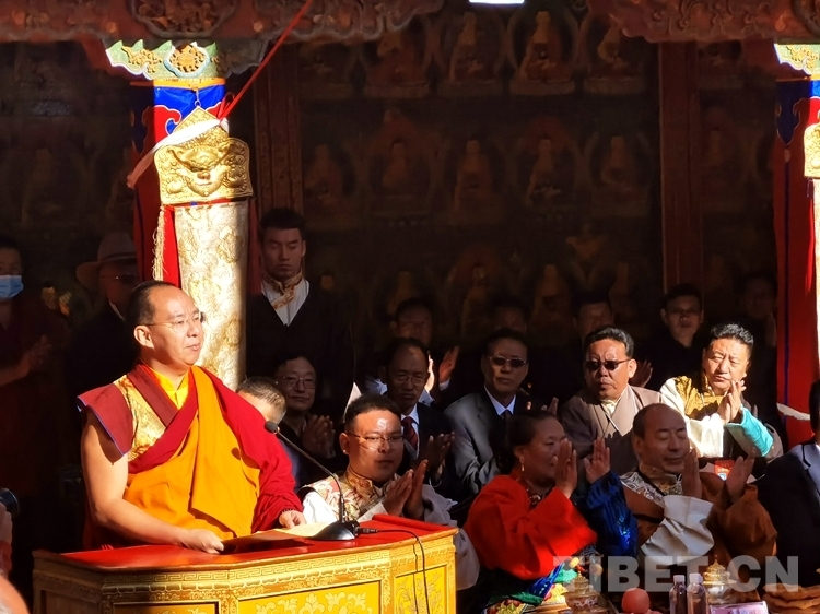 旦科代表西藏自治區(qū)黨委、政府講話:考取“嘎欽”佛學(xué)學(xué)位,是班禪額爾德尼?確吉杰布精進(jìn)學(xué)識(shí)、弘法利生畢生事業(yè)中的關(guān)鍵環(huán)節(jié),是二十五年來(lái)勤學(xué)苦修、?;劬阍龅闹苯芋w現(xiàn),是在宗教修為上全面成熟的重要標(biāo)志,更是習(xí)近平總書記和黨中央教育培養(yǎng)的重大成果。這是扎什倫布寺的一大喜事,是藏傳佛教界的一大盛事,是寺廟僧尼、信教群眾期盼已久的一件大事。