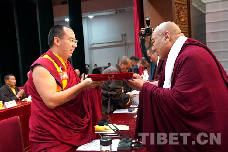圖為班禪為優(yōu)秀講經(jīng)高僧、闡釋論文者頒獎 攝影:王淑