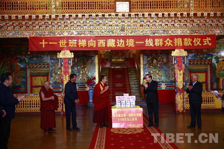 秉承佛教慈悲濟世精神,班禪向來心系蒼生、善信天下。在考取“嘎欽”佛學(xué)學(xué)位后,班禪決定將社會各界所贈與的鼓勵禮金回饋社會,于10月29日在日喀則市德慶格桑頗章捐贈100萬元,用于幫助西藏邊境一線群眾提升和改善生產(chǎn)生活。西藏自治區(qū)黨委常委、統(tǒng)戰(zhàn)部長旦科作為代表接受捐贈。