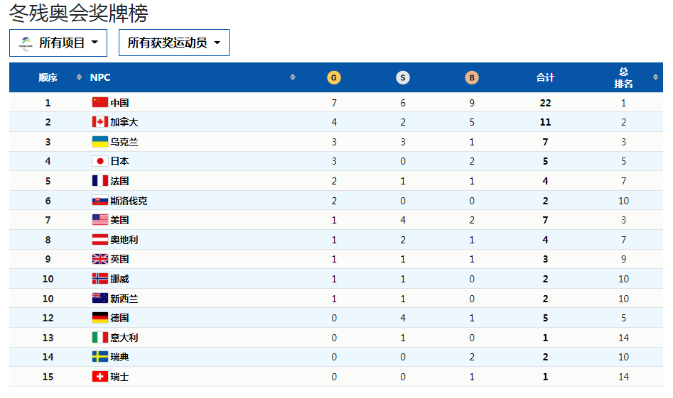 暫列獎(jiǎng)牌榜第一