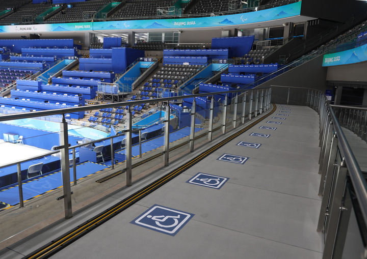 3月1日,國(guó)家體育館看臺(tái)席的無(wú)障礙坐席。新華社發(fā)(胡星宇攝)