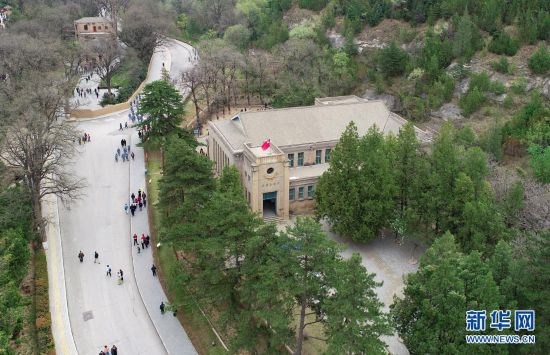 楊家?guī)X革命舊址中央大禮堂(4月21日攝,無人機照片)。新華社記者 張博文 攝