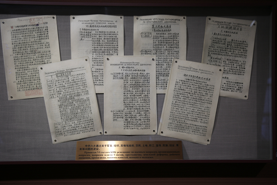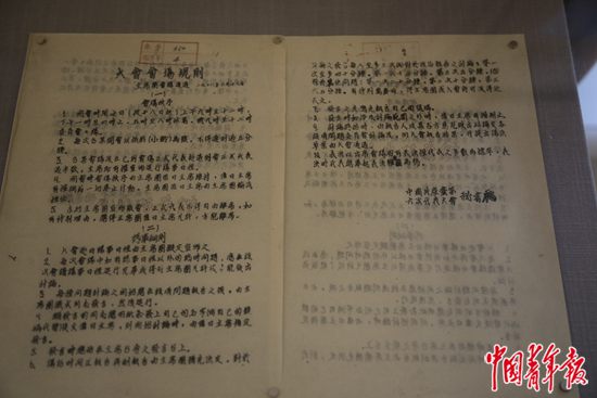 展廳第二部分“中共六大的籌備與召開(kāi)”中展出的大會(huì)會(huì)場(chǎng)規(guī)則文件。中青報(bào)·中青網(wǎng)駐俄羅斯記者 張健/攝