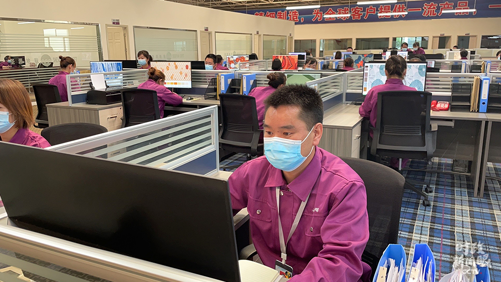 設(shè)計(jì)研發(fā)部正在修改名為“奮發(fā)圖強(qiáng)”的藏毯圖樣。 (總臺(tái)央視記者楊松濤、楊立峰拍攝)