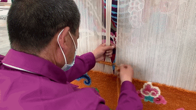 “西寧大白毛”纖維長(zhǎng)、彈性好、有光澤,織出的地毯質(zhì)地柔軟、堅(jiān)韌耐磨。 (總臺(tái)央視記者范凱拍攝)