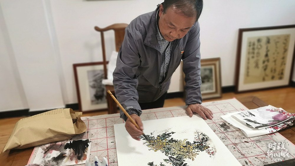 55歲的魏真盈是社區(qū)書畫室的國畫指導(dǎo)老師。(總臺(tái)央視記者覃思、馬超拍攝)