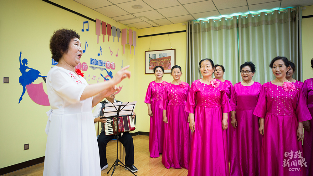社區(qū)合唱團(tuán)正在排練,總指揮是66歲的社區(qū)居民王紅梅。(總臺(tái)央視記者彭漢明拍攝)