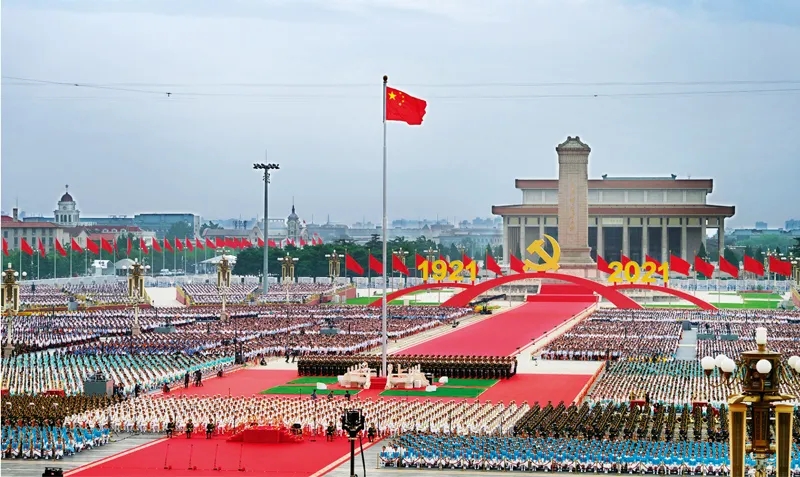 2021年7月1日上午,慶祝中國(guó)共產(chǎn)黨成立100周年大會(huì)在北京天安門廣場(chǎng)隆重舉行。習(xí)近平總書記在大會(huì)上莊嚴(yán)宣告,我們實(shí)現(xiàn)了全面建成小康社會(huì)的第一個(gè)百年奮斗目標(biāo)。圖為慶祝大會(huì)現(xiàn)場(chǎng)?!±铘?攝