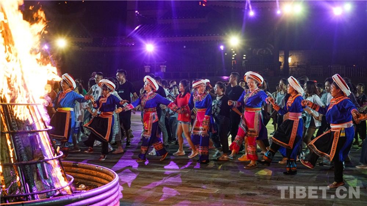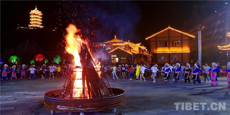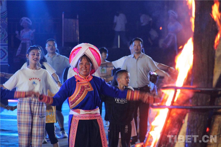中國(guó)西藏網(wǎng)訊 當(dāng)陣陣涼風(fēng)襲來(lái),暑氣漸消,暮靄沉沉。碧水青山環(huán)抱的阿妹戚托小鎮(zhèn)卻漸漸躁動(dòng)起來(lái),熱騰的火苗將夏夜“點(diǎn)燃”,人們環(huán)繞火把載歌載舞、歡唱高歌,沉醉其中、樂(lè)而忘返。