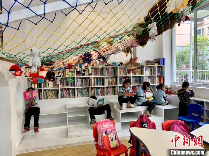 圖為當(dāng)?shù)貎和谌龑殐和瘓D書館開館當(dāng)日看書學(xué)習(xí)?!埗?攝