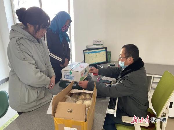 1月6日上午,甘肅日報(bào)社、甘肅日報(bào)報(bào)業(yè)集團(tuán)“新春走基層——走郵路 看新局”全媒體采訪小組一行來到榆中縣貢井鎮(zhèn),見到村民張婉霞正在貢井郵政所里忙著寄出自家產(chǎn)的百合。