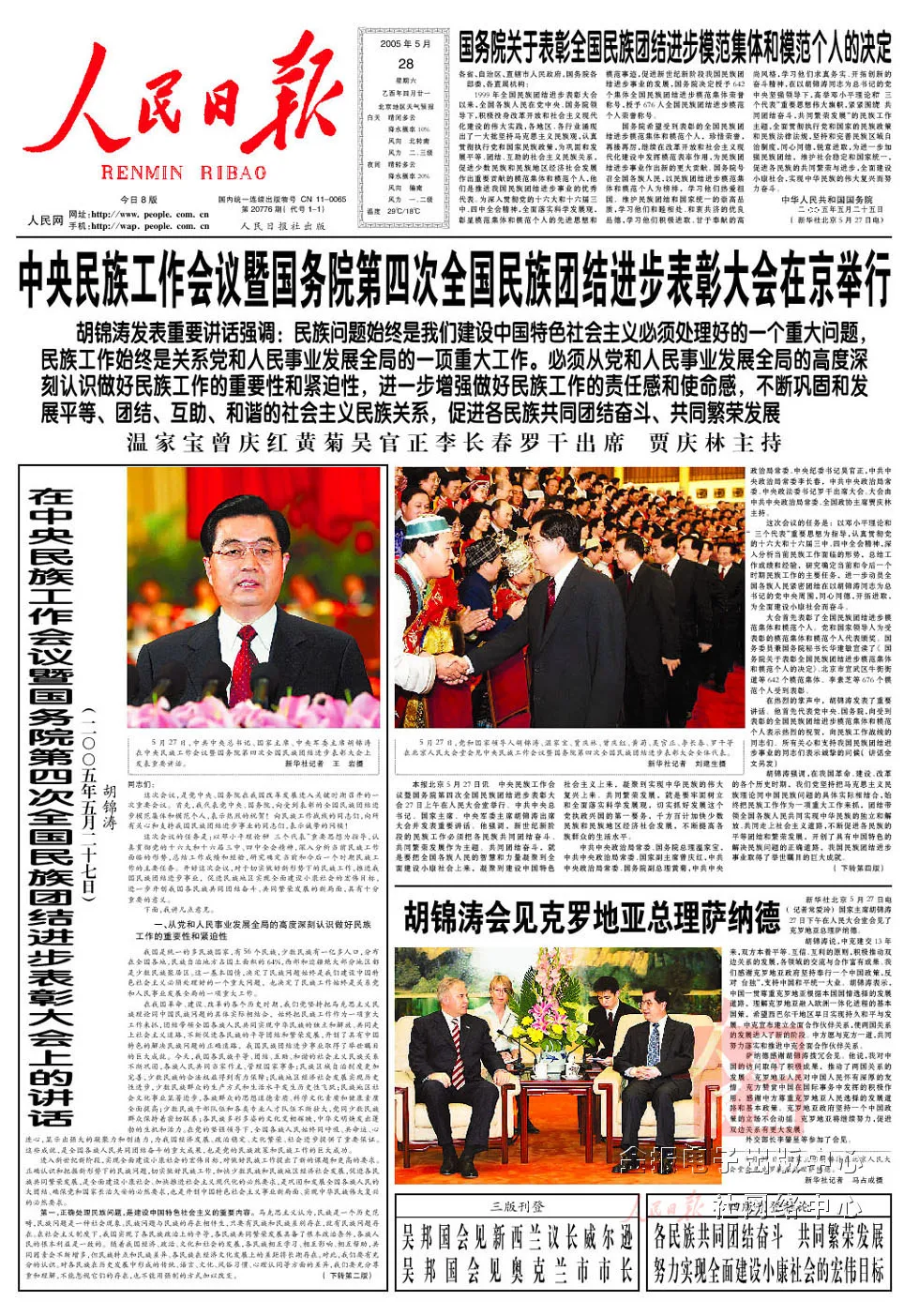 2005年5月27日至28日,第三次中央民族工作會議暨國務院第四次全國民族團結進步表彰大會在北京召開。