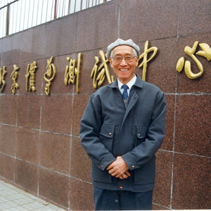 上世紀(jì)90年代,陸元九在北京慣導(dǎo)測試中心調(diào)研時在門前留影。新華社發(fā)(中國航天科技集團(tuán)供圖)