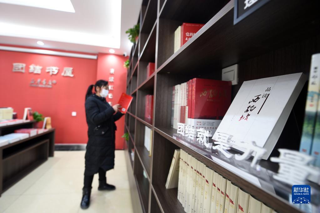 1月28日,在河北省平山縣西柏坡鎮(zhèn)北莊村團結書屋,工作人員在整理書籍。新華社記者 駱學峰 攝