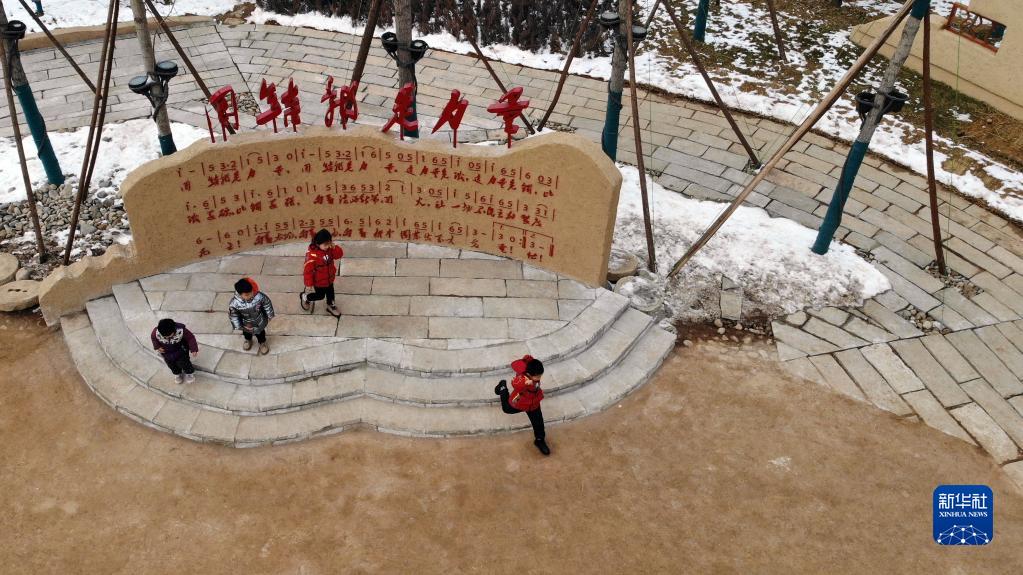 1月28日,小朋友在河北省平山縣西柏坡鎮(zhèn)北莊村(無人機照片)。新華社記者 駱學峰 攝