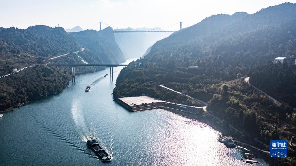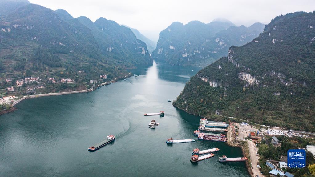 近年來,構(gòu)皮灘、思林、沙沱電站大型升船機(jī)相繼投入運(yùn)行,烏江水道全面貫通。2021年11月,貴陽港開陽港區(qū)北上長江首航,14艘貨船運(yùn)載6800噸磷礦,從貴陽港開陽港區(qū)出發(fā),前往重慶涪陵。這標(biāo)志著烏江“黃金水道”全線大規(guī)模復(fù)航,500噸級(jí)船舶可直達(dá)長江。