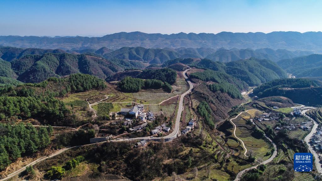 貴州省畢節(jié)市赫章縣河鎮(zhèn)鄉(xiāng)海雀村風(fēng)貌(2018年11月28日攝,無人機(jī)照片)。新華社記者 陶亮 攝