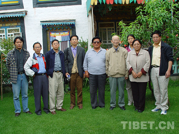 圖為陳慶英先生(右4)帶領(lǐng)課題組成員在西藏調(diào)研期間與西藏社會(huì)科學(xué)院、西藏大學(xué)專家合影 (圖片由張?jiān)铺峁?/p>