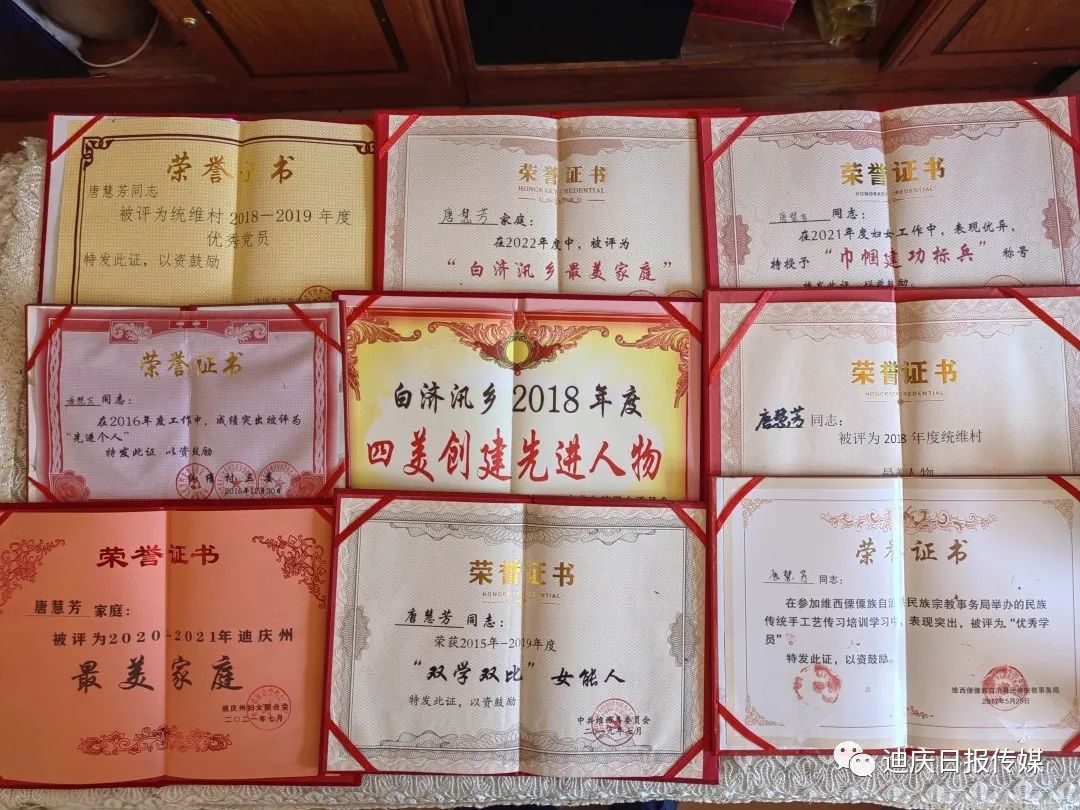 唐慧芳孝老愛親的精神不僅讓自己的公公婆婆能夠安享晚年幸福生活,也用實(shí)際行動(dòng)感染了晚輩。她的家庭多次被州婦聯(lián)評(píng)定為“最美家庭”,她多次被縣、鄉(xiāng)、村評(píng)定為“最美人物”“雙學(xué)雙比”女能人、“優(yōu)秀黨員”“巾幗建功標(biāo)兵”“先進(jìn)個(gè)人”。她用她的樸實(shí)真誠(chéng)詮釋著中華兒女尊老愛老、孝老愛親的優(yōu)秀品質(zhì),她用她的無(wú)私奉獻(xiàn)踐行了一名共產(chǎn)黨員甘當(dāng)群眾的“貼心人”的莊嚴(yán)承諾!