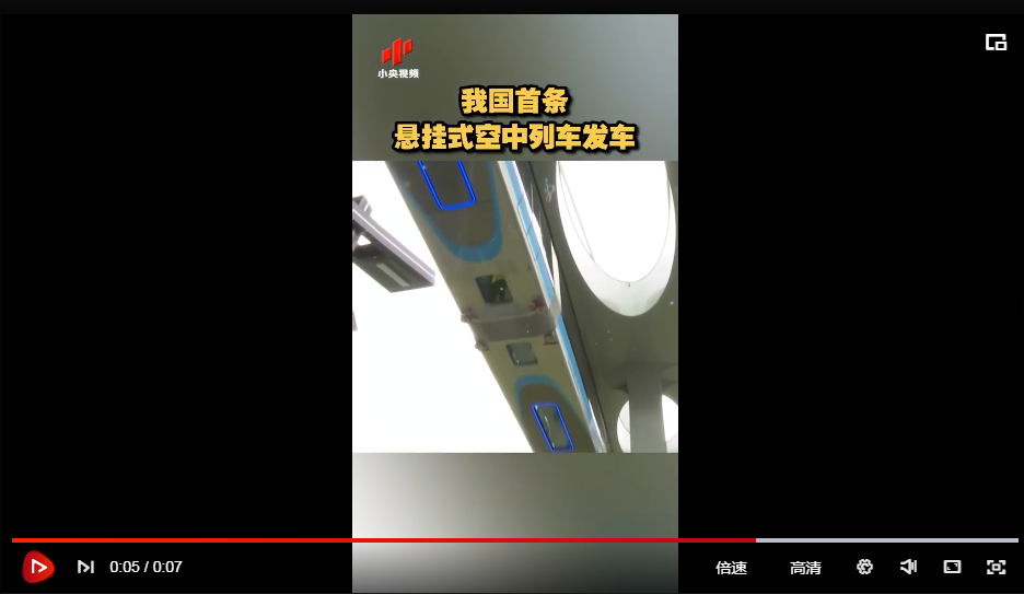 5月11日,湖北武漢,我國首條懸掛式空中列車試乘發(fā)車,它懸掛在單型軌道下方,有無人駕駛功能,最高運(yùn)行時速60公里,預(yù)計今年內(nèi)開通運(yùn)營。