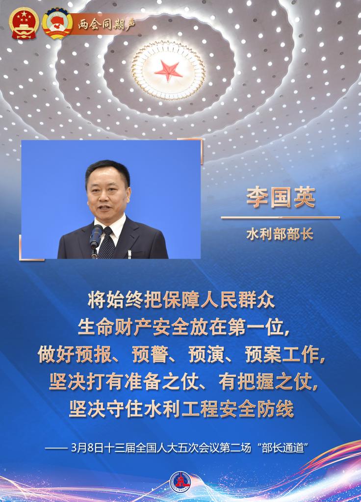 水旱災害關乎人民生命財產安全。今年夏汛情勢如何?怎樣全面提升國家水安全保障能力?國家水網重大工程如何實施?8日的十三屆全國人大五次會議“部長通道”上,水利部部長李國英回應了社會關切熱點。