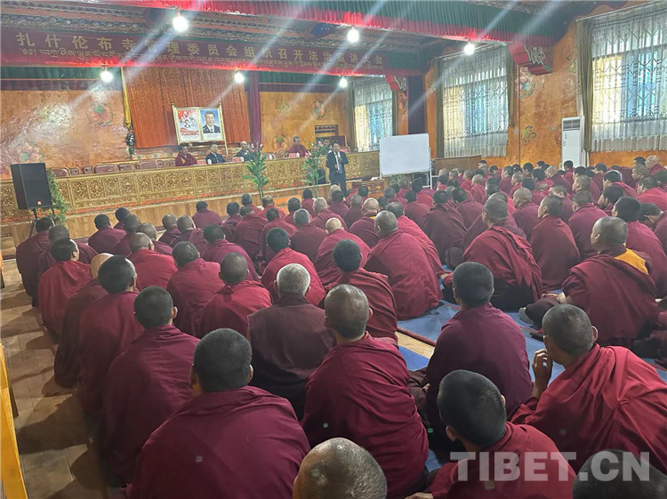 圖為扎什倫布寺僧人開展法治宣講大會 圖由扎什倫布寺提供