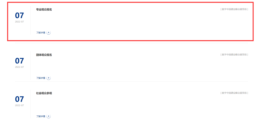 瀏覽器搜索“數(shù)字中國(guó)建設(shè)峰會(huì)”進(jìn)入官網(wǎng)。點(diǎn)擊“觀眾報(bào)名”欄目,選擇“專(zhuān)業(yè)觀眾報(bào)名”。