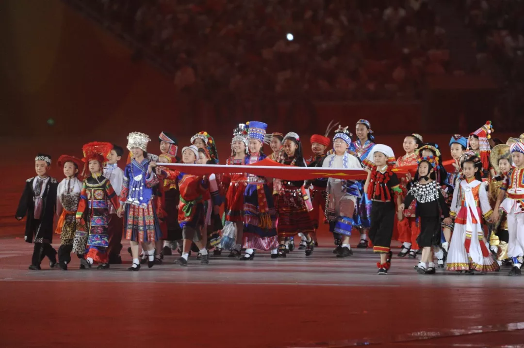 在2008年北京奧運會開幕式上,各民族兒童在《歌唱祖國》的旋律中簇擁著鮮艷的中國國旗入場。(資料圖片)