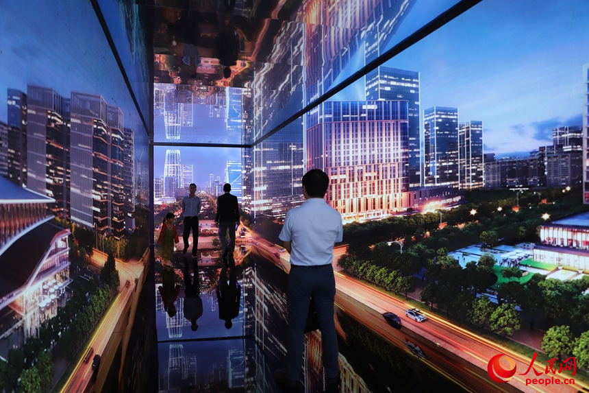 河北展區(qū),雄安新區(qū)時(shí)空長廊打造出沉浸式、交互式創(chuàng)意體驗(yàn)空間。人民網(wǎng) 劉森君攝
