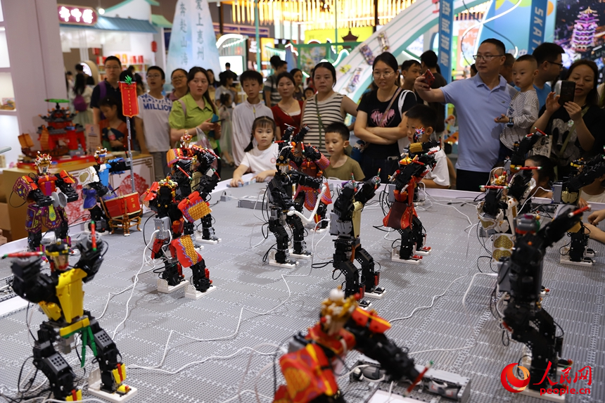 汕頭展區(qū),機(jī)器人跳起“英歌舞”。人民網(wǎng) 劉森君攝