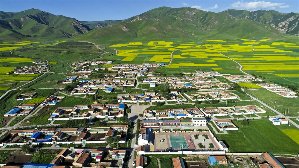 這是青海省海北藏族自治州海晏縣金灘鄉(xiāng)東達村夏日景色(無人機照片,資料照片)。新華社發(fā)(李勇 攝)