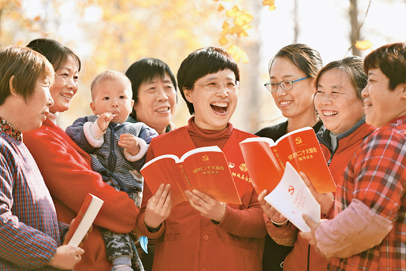 圖為2022年11月17日,山東省臨沂市郯城縣“巾幗宣講團(tuán)”成員為群眾宣講黨的二十大精神。 人民圖片 房德華/攝