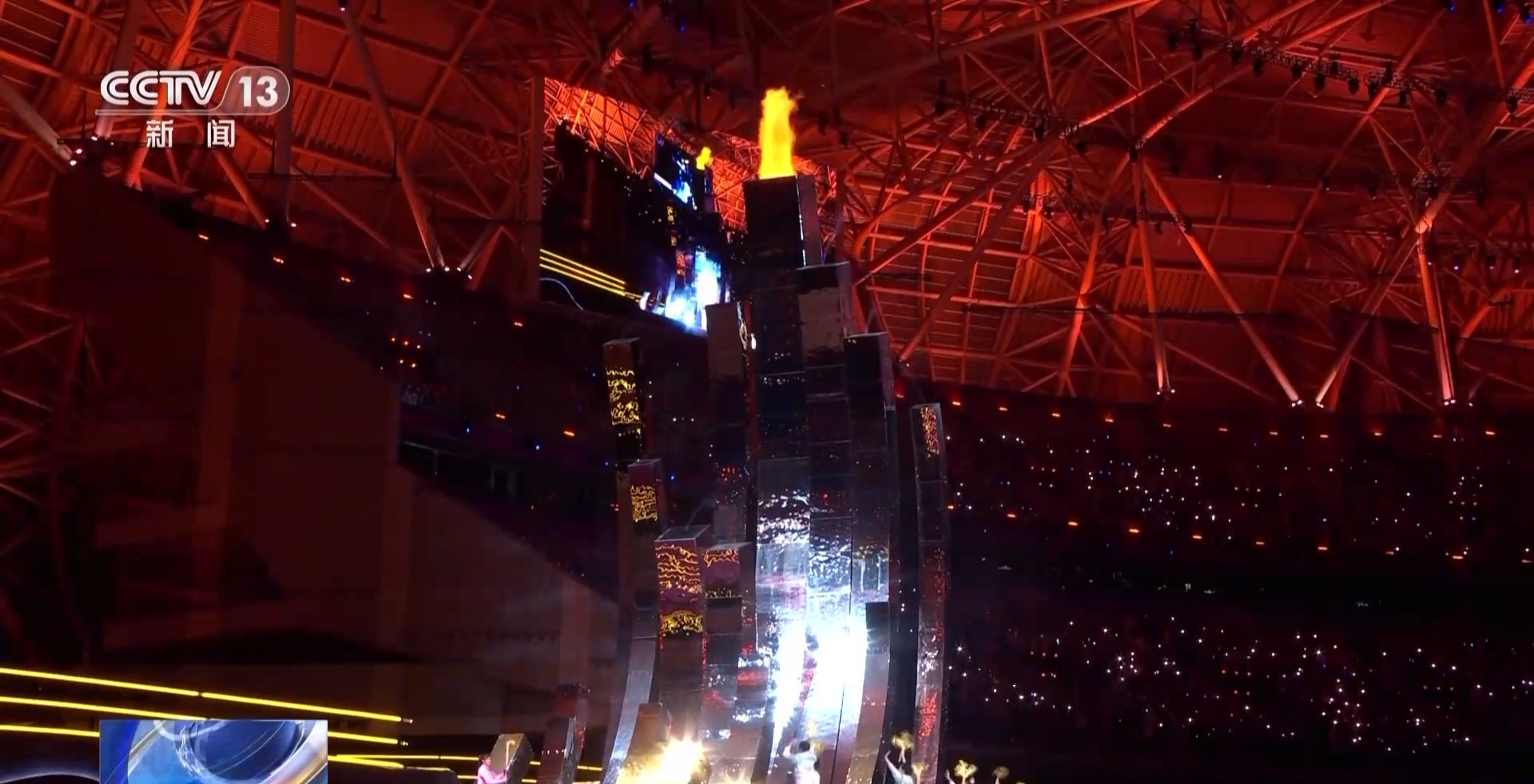 開幕式尾聲,吉祥物“飛飛”與火炬手一起借助科技的力量點(diǎn)燃主火炬,將全場(chǎng)的氛圍推向最高潮的同時(shí),也開啟了殘疾人運(yùn)動(dòng)員們逐夢(mèng)亞殘運(yùn)賽場(chǎng)的旅程。