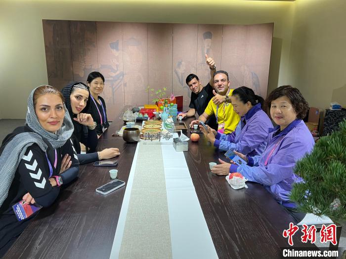 9月25日,來(lái)自伊朗的技術(shù)官員品杭州桂花龍井?!埵缒?攝