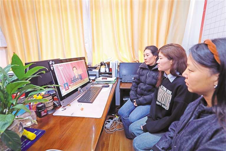 3月4日15時(shí),全國政協(xié)十四屆二次會(huì)議在人民大會(huì)堂開幕,西藏各族干部群眾通過各種方式收聽收看開幕會(huì)。