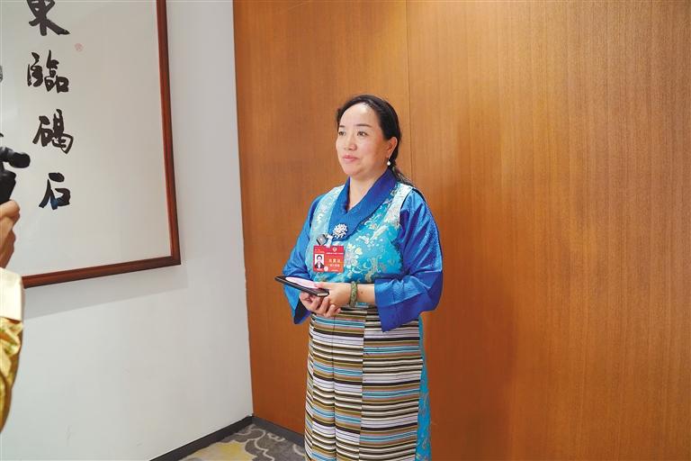 全國(guó)人大代表白瑪措在會(huì)上發(fā)言。記者 旦增西旦 攝