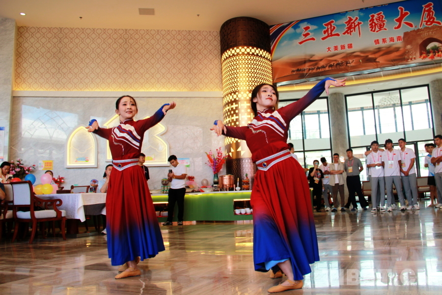 圖為新疆代表團在駐地海南三亞新疆大廈精心準備聯(lián)誼活動 攝影:劉莉