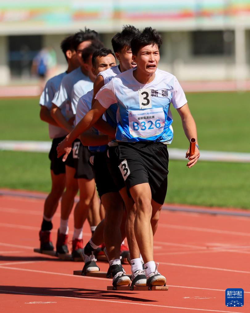 當(dāng)日,第十二屆全國少數(shù)民族傳統(tǒng)體育運(yùn)動會板鞋競速男子2x100米接力復(fù)賽在海南省三亞市舉行。