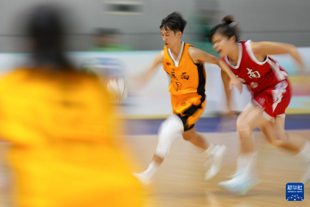 11月27日,貴州隊(duì)球員陳奕亦(左)在比賽中運(yùn)球。最終,貴州隊(duì)47比45戰(zhàn)勝北京隊(duì)。