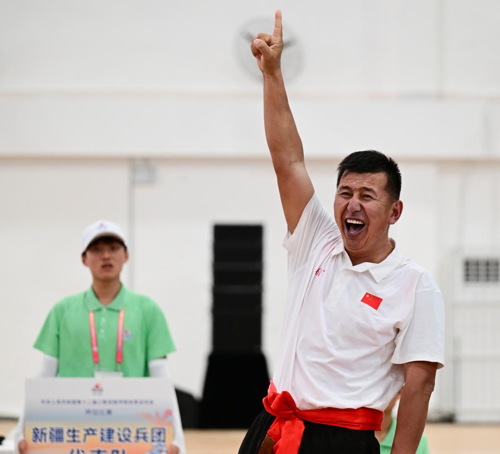 27日,第十二屆全國少數(shù)民族傳統(tǒng)體育運(yùn)動會(以下簡稱“運(yùn)動會”)押加比賽迎來五個組別的最終爭奪。新疆生產(chǎn)建設(shè)兵團(tuán)選手提亞那克驚險(xiǎn)取勝,獲得85公斤級一等獎。一場鏖戰(zhàn)后,他與來自海南的選手吉航敬擁抱致意。