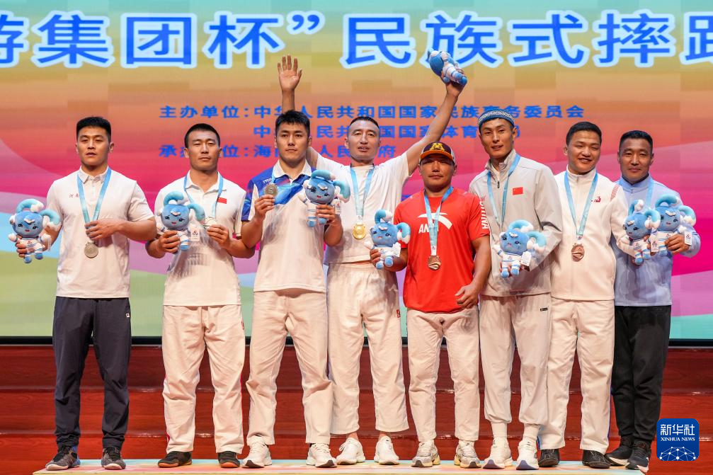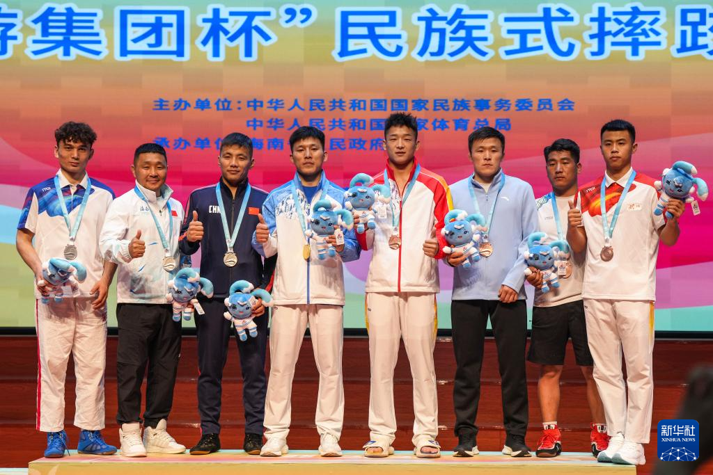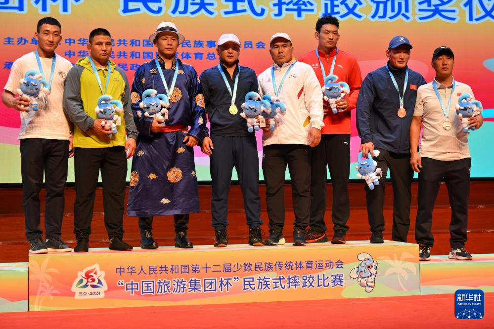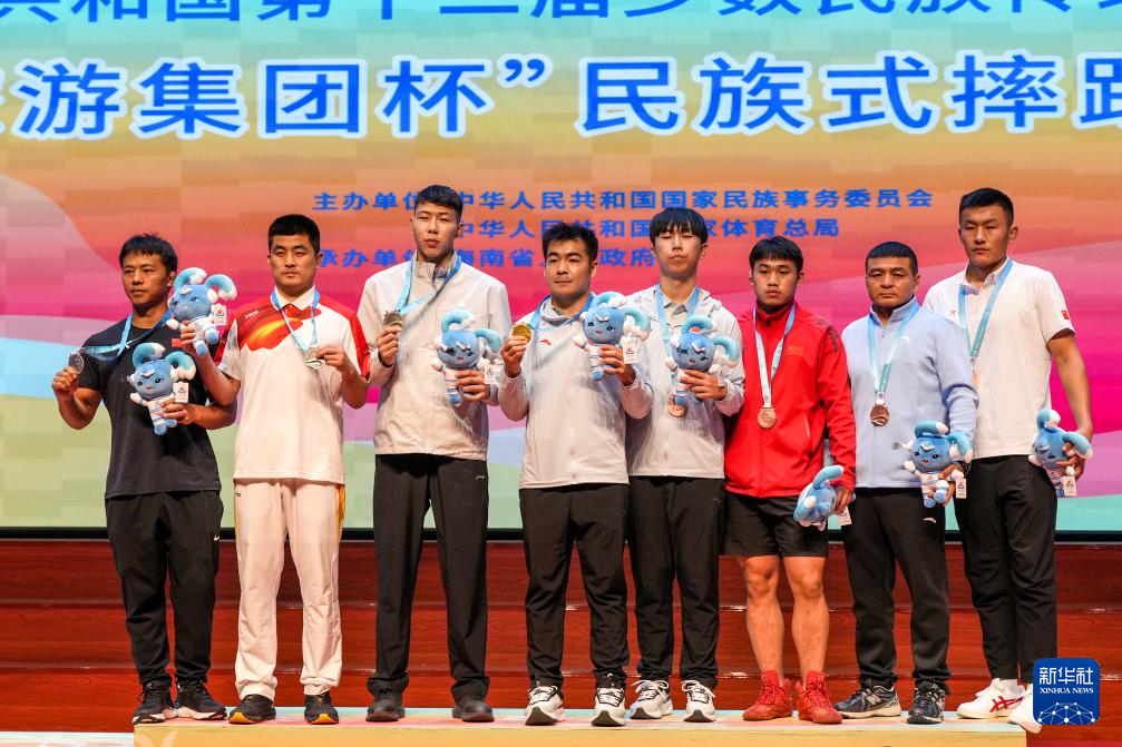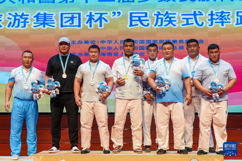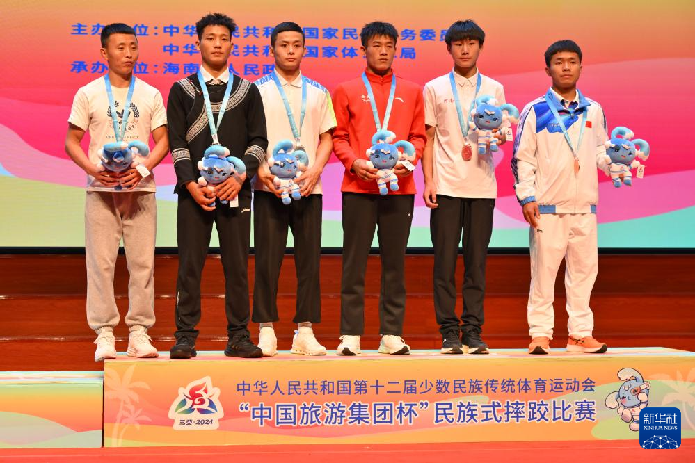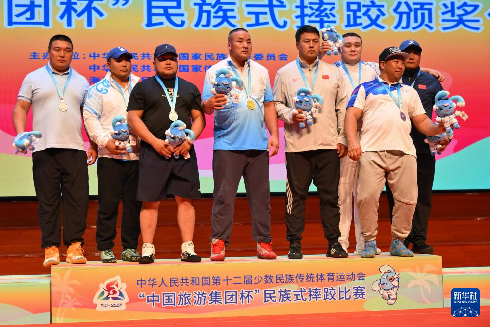當(dāng)日,第十二屆全國少數(shù)民族傳統(tǒng)體育運動會民族式摔跤項目頒獎儀式在海南省三亞市舉行。